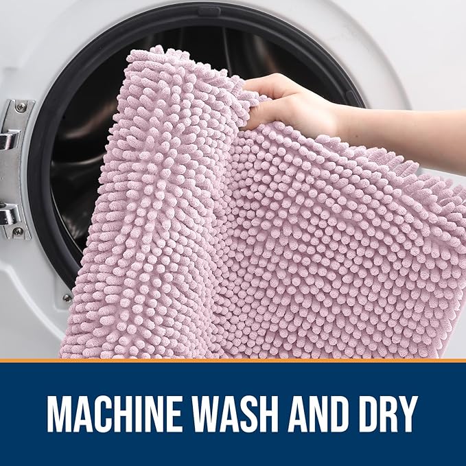 OLANLY Dog Door Mat for Muddy Paws 34x21, Absorbs Moisture and Dirt, Absorbent Non-Slip Washable Doormat, Quick Dry Chenille Mud Mat for Dogs, Entry Indoor Entryway Carpet for Inside Floor, Dusty Rose