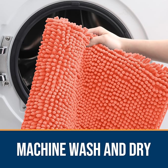 OLANLY Dog Door Mat for Muddy Paws 44x32, Absorbs Moisture and Dirt, Absorbent Non-Slip Washable Doormat, Quick Dry Chenille Mud Mat for Dogs, Entry Indoor Entryway Carpet for Inside Floor, Coral
