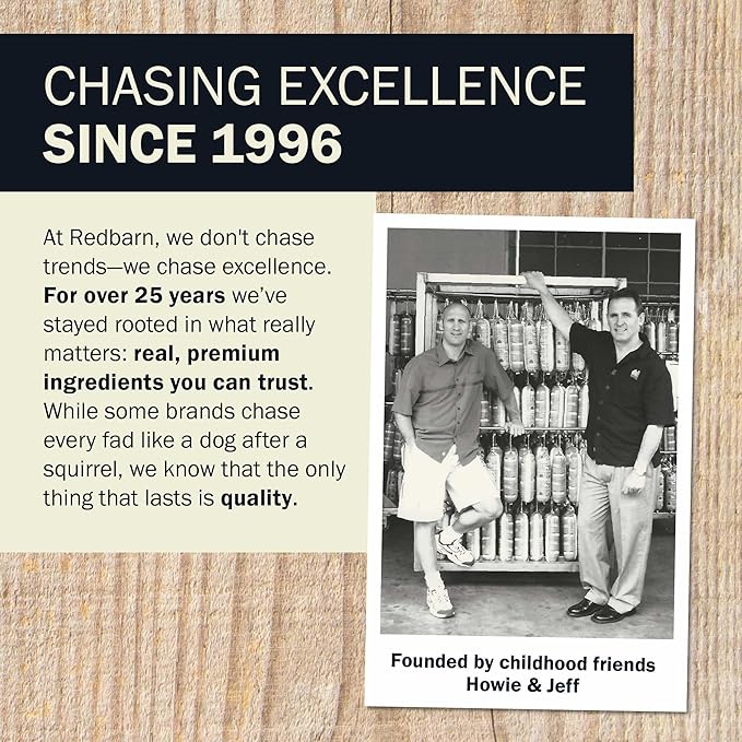 - Quality Pet Parents Trust Since 1996: For over 25 years Redbarn has been dedicated to crafting natural dog chews and food with real, honest ingredients that stand the test of time. While trends come and go, we remain committed to quality and integrity—today, tomorrow, always.