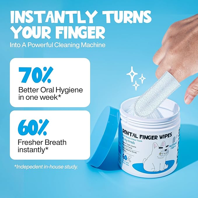 Dog Teeth Cleaning Wipes 60 Packs - Dental Wipes to Reduce Plaque & Tartar for Dogs & Cats - Mint Pet Dental Wipes for Oral Freshness - Dog Tooth Brushing Kit Dental Wipes