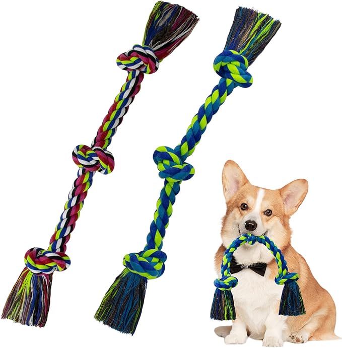 [2 Pack] Dog Rope Toys, Dog Chew Toy for Medium and Small Dogs, 3 Knots Heavy Duty Puppy Rope Toy, 100% Cotton Tug of War Dog Toys for Boredom, Teeth Cleaning