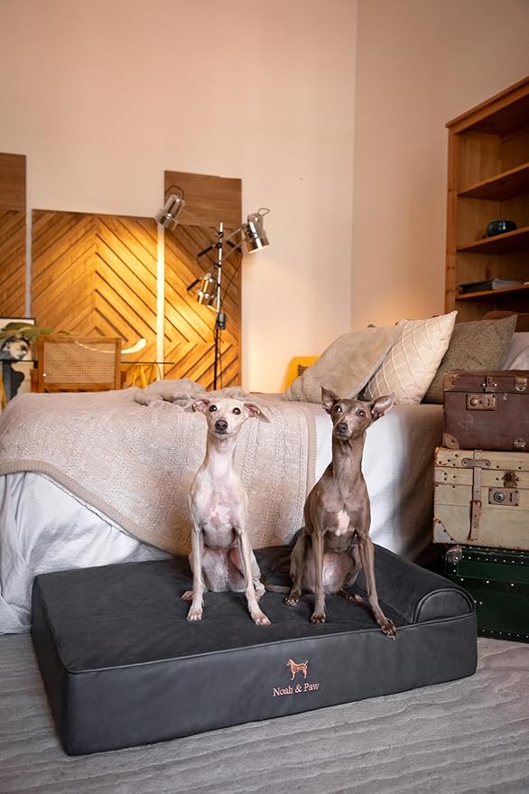 NOAH & PAW Large Dog Bed, 35x25x8.7 Inch, Orthopedic Dog Beds, Eggshell Memory Foam Infused with Cooling Gel, Waterproof, Machine Washable, Includes Inner Cover (Faux Leather)