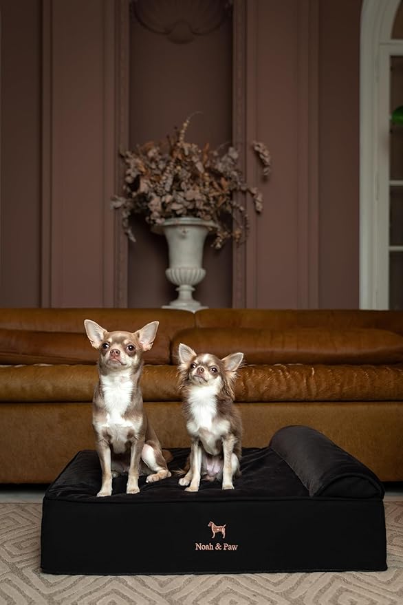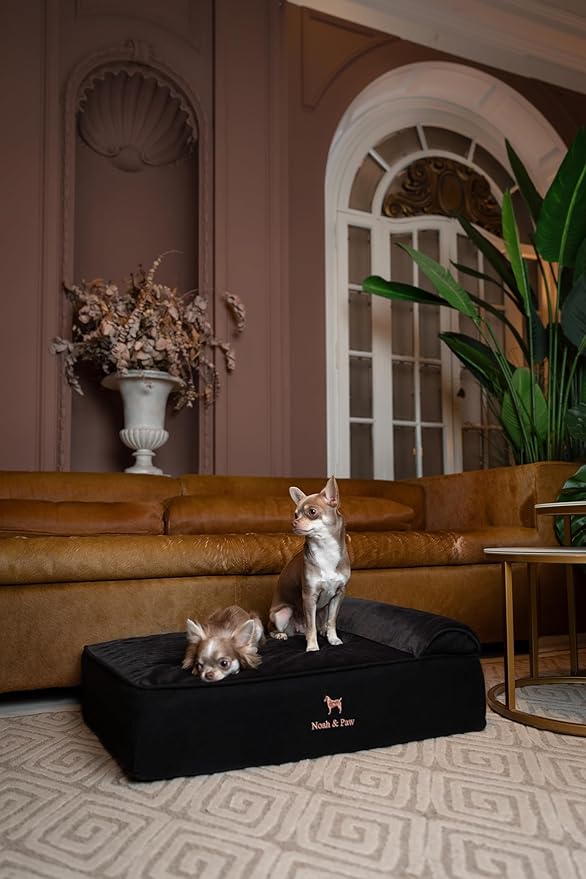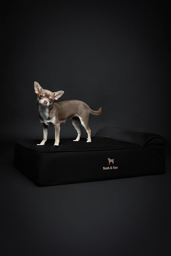 • Human-grade dog bed: The orthopedic dog bed features a 6" thick base excluding the headrest. The foam design is contracted from a 3-layer, 4-inch base (30D) + 1" memory foam + 1" eggshell foam infused with cooling gel. Creating a comfortable raised dog bed.