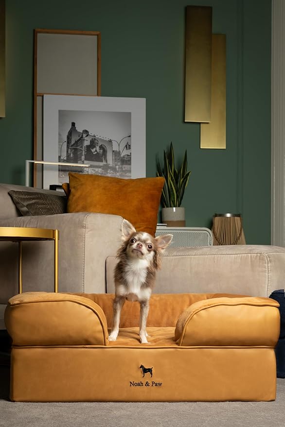 NOAH & PAW Dog Bed, 28x23x11 Inch, Orthopedic Dog Beds for Medium Size Pets, Eggshell Memory Foam Infused with Cooling Gel, Inner Cover, Waterproof, Machine Washable (Faux Leather Sofa Collection)