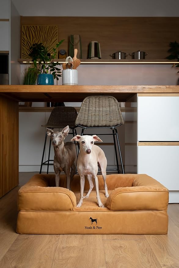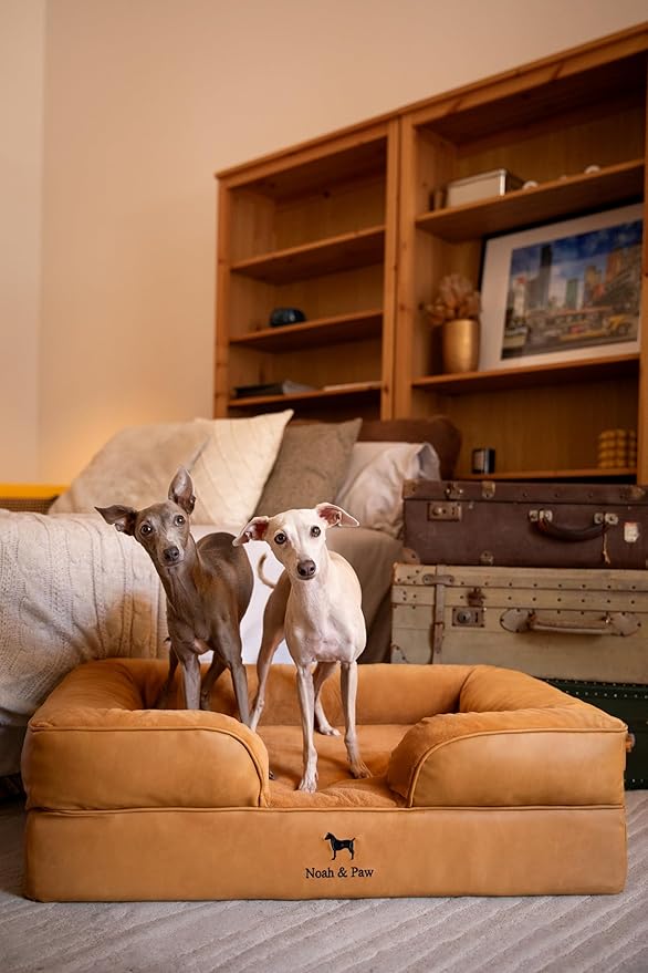 NOAH & PAW Large Dog Bed, 35x25x11 Inch, Orthopedic Dog Beds, Eggshell Memory Foam Infused with Cooling Gel, Inner Cover, Waterproof, Machine Washable (Faux Leather Sofa Collection)