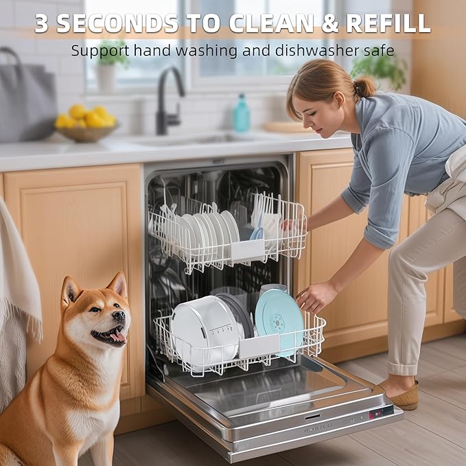 - Easy Clean & Dishwasher Safe: Without removing the floating disk, you can rinse directly with clean water or wipe with a soft cloth. The splash-proof dog water bowl is fully dishwasher-safe for hassle-free maintenance. Say goodbye to hard to reach corners