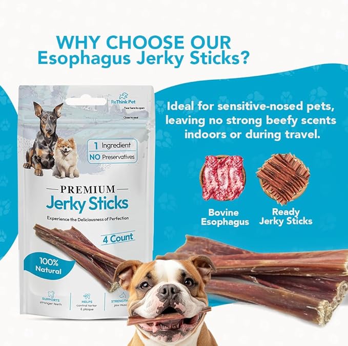 - Highly Digestible: ReThink Pet formulated these Dog Jerky Treats to be gentle on your dog's stomach. These beef jerky dog snacks and treats ensure that your pet can enjoy the treat without any digestive issues, making it a safe and enjoyable snack.