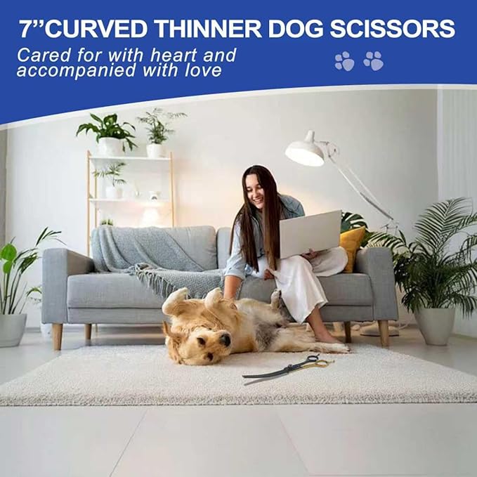 7" Curved Thinner Dog Scissor, Curved Blender Scissors, 40 Teeth, 30% Thinning Rate, Professional Pet Shear for Groomer, Ergonomic Dog Grooming Scissor, Dogs Shear for Grooming