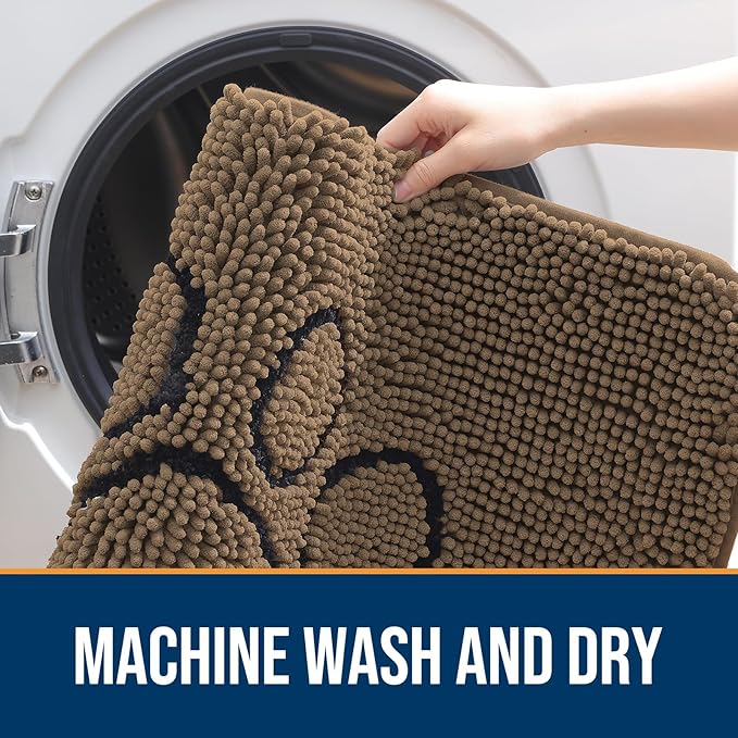 - [LOW PROFILE AND EASY CARE] OLANLY's Chenille Dog Door Mat boasts a slim 1-inch profile, offering a sleek and streamlined appearance. The thoughtful design ensures your doors won't get stuck, and the mat stays securely in place. Cleaning is a breeze β simply shake off any dirt or debris, or toss it in the washing machine for a deeper clean. It dries quickly, so you can be sure it's ready to use again in no time.