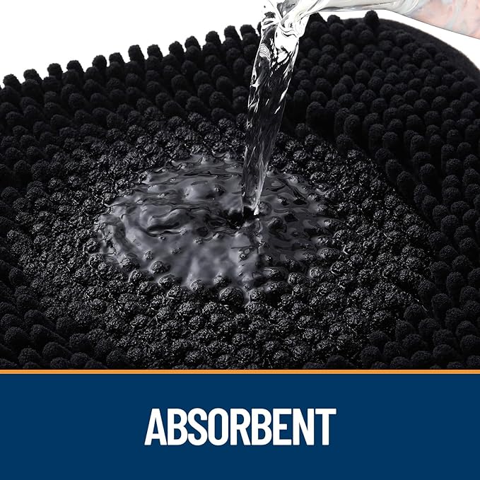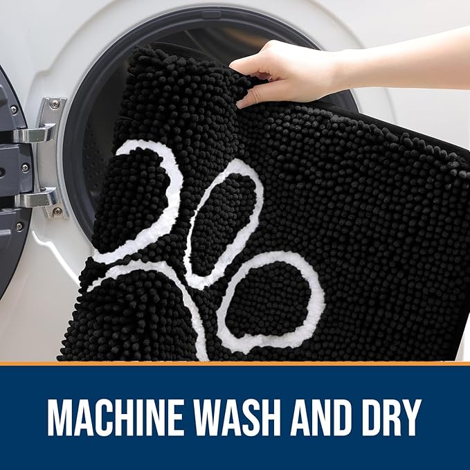 OLANLY Dog Door Mat for Muddy Paws 24x16, Paw Print Design, Absorbs Moisture and Dirt, Absorbent Non-Slip Washable Doormat, Quick Dry Chenille Mud Mat for Dogs, Entry Indoor Entryway Carpet, Black