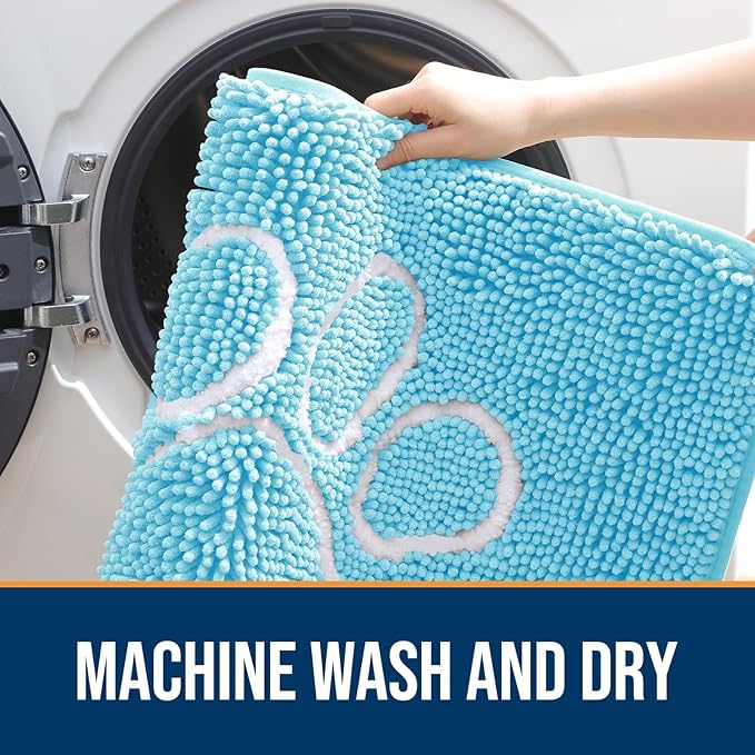 OLANLY Dog Door Mat for Muddy Paws 30x20, Paw Print Design, Absorbs Moisture and Dirt, Absorbent Non-Slip Washable Doormat, Quick Dry Chenille Mud Mat for Dogs, Entry Indoor Entryway Carpet, Blue
