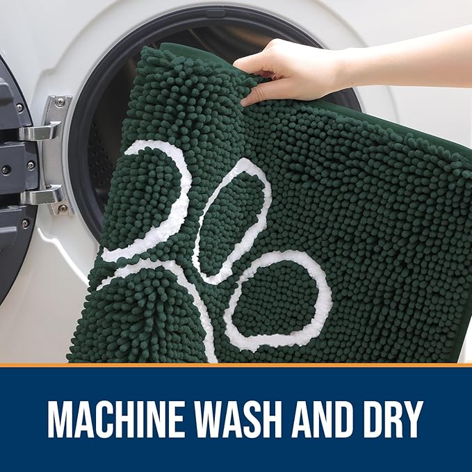 OLANLY Dog Door Mat for Muddy Paws 59x35, Paw Print Design, Absorbs Moisture and Dirt, Absorbent Non-Slip Washable Doormat, Quick Dry Chenille Mud Mat, Entry Indoor Entryway Carpet, Blackish Green