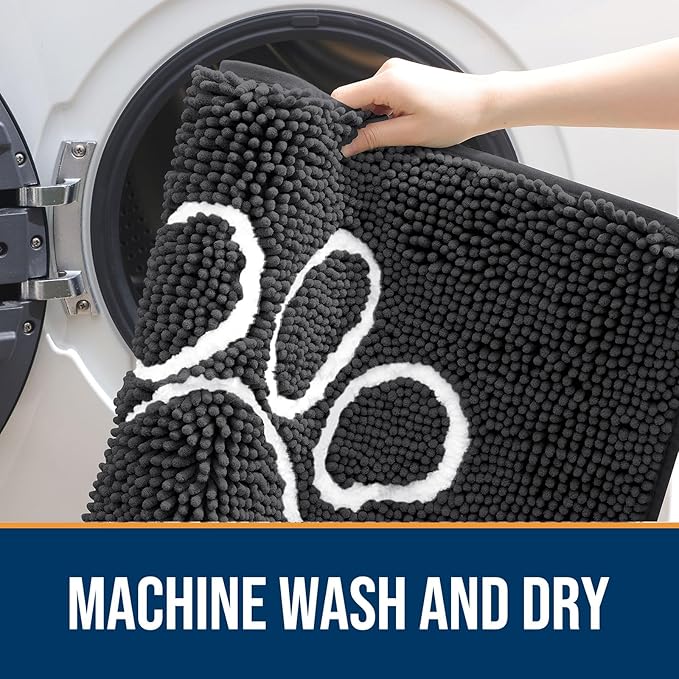 OLANLY Dog Door Mat for Muddy Paws 70x24, Paw Print Design, Absorbs Moisture and Dirt, Absorbent Non-Slip Washable Doormat, Quick Dry Chenille Mud Mat for Dogs, Entry Indoor Entryway Carpet, Dark Grey