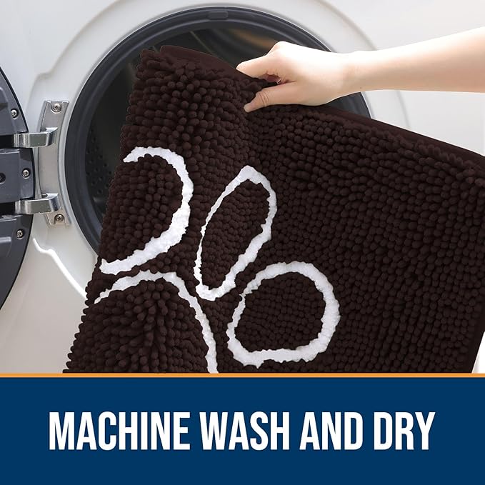 OLANLY Dog Door Mat for Muddy Paws 59x35, Paw Print Design, Absorbs Moisture and Dirt, Absorbent Non-Slip Washable Doormat, Quick Dry Chenille Mud Mat for Dogs, Entry Indoor Entryway Carpet, Brown