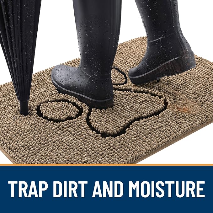 - [ABSORBS MOISTURE AND DIRT] OLANLY indoor dog mat for muddy paws is crafted to efficiently remove dirt and swiftly absorb moisture. With our doormat, your shoes will be instantly clear of any water, dust, grit, muck, sand, sleet, grass, slush, rain, or snow upon entering the house. It's an excellent choice for use as an entryway door mat, a welcoming door mat, or a dirt-trapping mat.