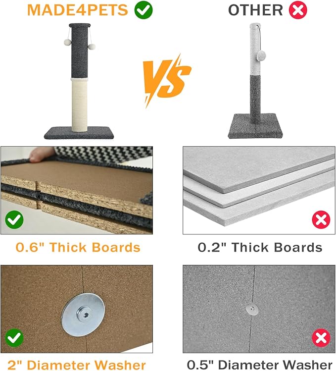 - Easy & Quick Assembly: This scratching post comes with easy-to-follow instructions and all the necessary tools to assemble it in just minutes. Start providing your cat with a safe and fun scratching spot right away, a high quality scratching posts for indoor cats both adults and kittens.
