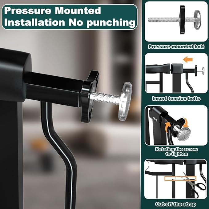 - 【No Drilling Installation】This baby gate features adjustable pressure bolts for easy, damage-free installation and removal. Watch the installation video on our homepage.