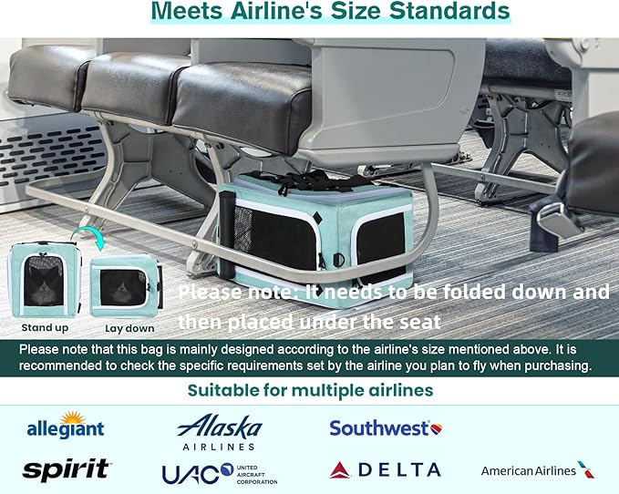 - Airline Compatibility: Approved for use on major airlines like Allegiant, Southwest, and more. Designed for cats up to 5KG (12lbs), ensuring a hassle-free travel experience. Always verify specific airline requirements before your journey.