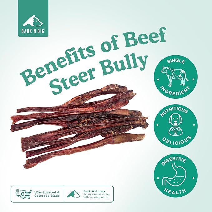 - 100% USA Beef: Sourced from premium, all-natural beef, our steer bully sticks are made in America with no artificial additives, chemicals, or preservatives—just pure, beefy goodness.