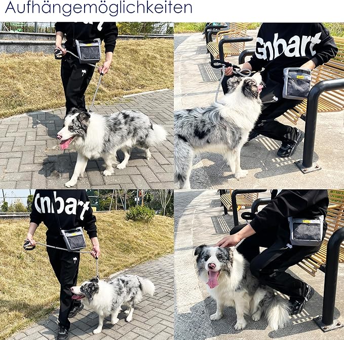 - 3.Enhanced Magnetic Closure: The bag features two sets of powerful magnets at the opening, ensuring automatic closure and preventing food from spilling, even when bending over. A convenient pull tab allows for one-handed opening when you need access to the contents of your dog treat pouch. The strong magnets make it a perfect solution for training and walking, ensuring your treats stay secure in the dog treats holder for training.