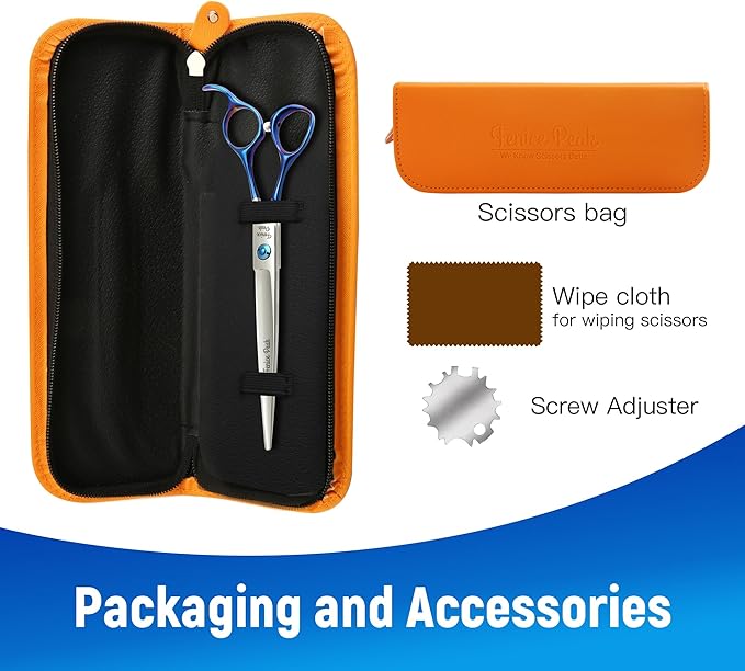 - Sharp and Fine Cut - These dog grooming scissors are sharpened by handicraftsmen. Experts check the scissors' sharpening one by one. Consequently, the blades of these pet grooming scissors are extremely sharp, and the cut is very fine, precise, and fast, It works very well on any type of coat, regardless of whether it is thick, wiry, or curly.