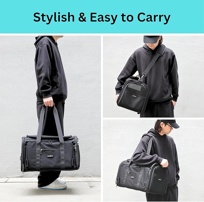 - Huge Pocket Space: Equipped with 4 pockets: one large zippered pocket for carrying bigger items, one small zippered pocket for essentials like a wallet, one fan-friendly mesh pocket for placing a portable fan, and one wide side pocket for other pet supplies. Our cat carriers offer one of the largest pocket storage options among other brands and can accommodate all dog travel accessories as well as all cat accessories for travel.