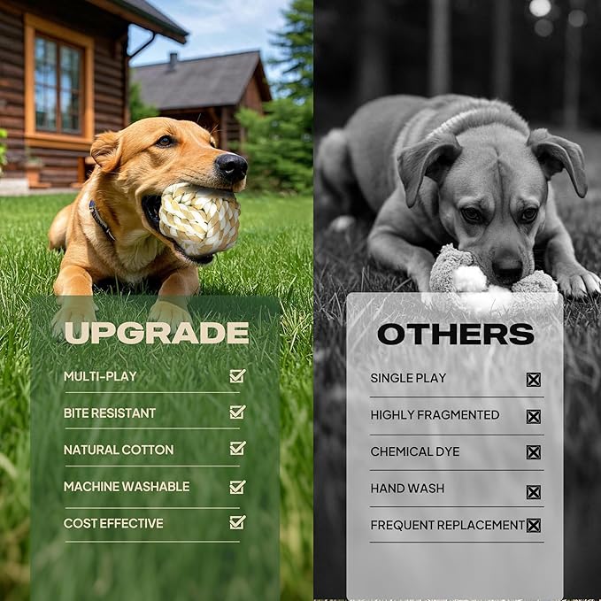 - 【Rope Toys for Dogs Aggressive Chewers】Our dog rope toy is made of 100% natural washable cotton, it’s safe for your pet to chew and play daily. And the durable dog toys are featuring wear-resistant, tightly woven twist and sturdy knots make large dog toys withstand for aggressive chewing