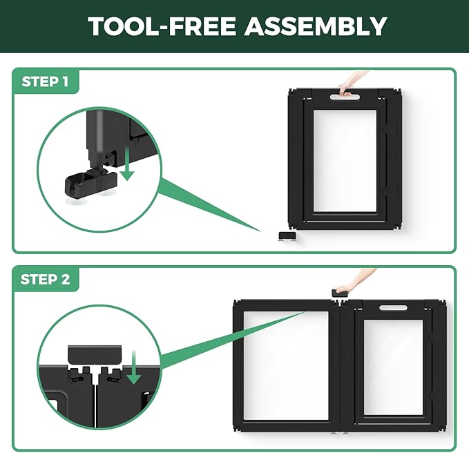 - Tool-Free, Customizable Assembly: No tools required—simply snap the panels together to create the perfect play area or barrier, with flexibility to adapt to any space.