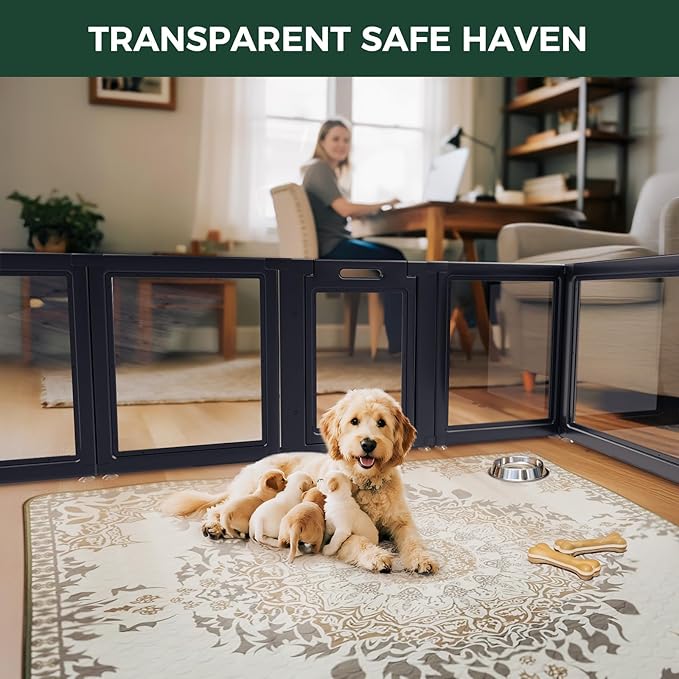 - Escape-Free, Safe Play: Transparent and seamless panels create a secure playpen to keep energetic dogs safely inside, preventing them from climbing out or getting their paws stuck in gaps.