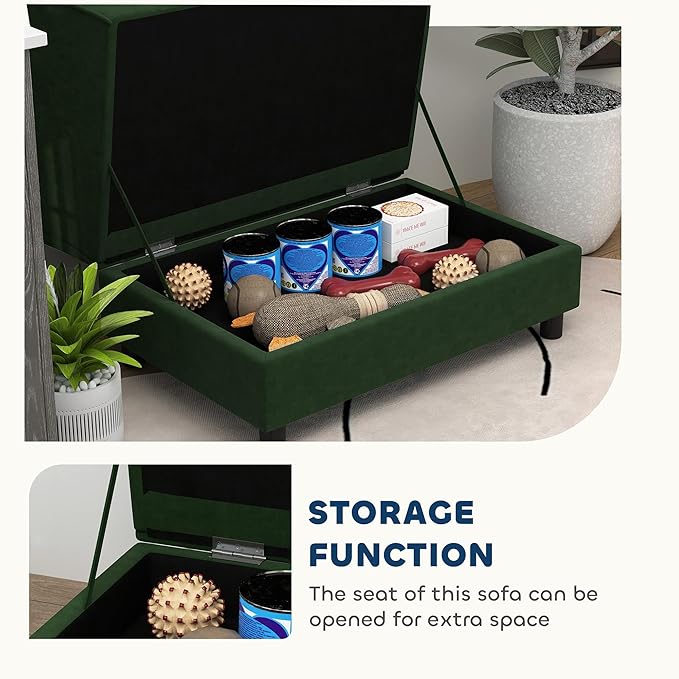 PawHut Luxury Fancy Dog Couch with Hidden Storage, Small Dog Sofa Bed with 2" Soft Foam, Modern Pet Furniture for Puppies & Little Breeds, Green