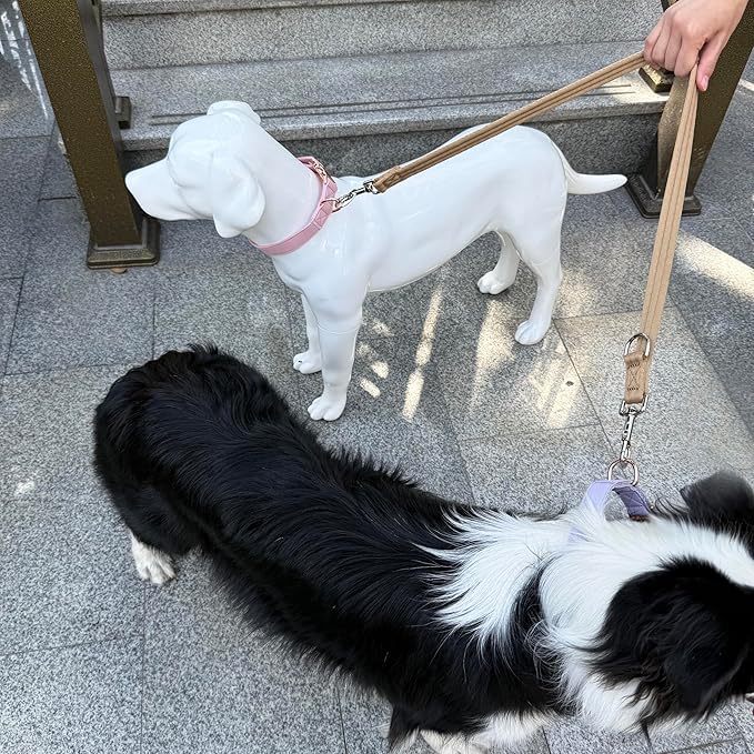 - [DURABLE & DEPENDABLE]: Made from lightweight premium webbing, giving it both strength and comfort for everyday use in all weather。The 2 sturdy metal clips on the leash can be freely rotated 360° to prevent the leash from getting tangled。