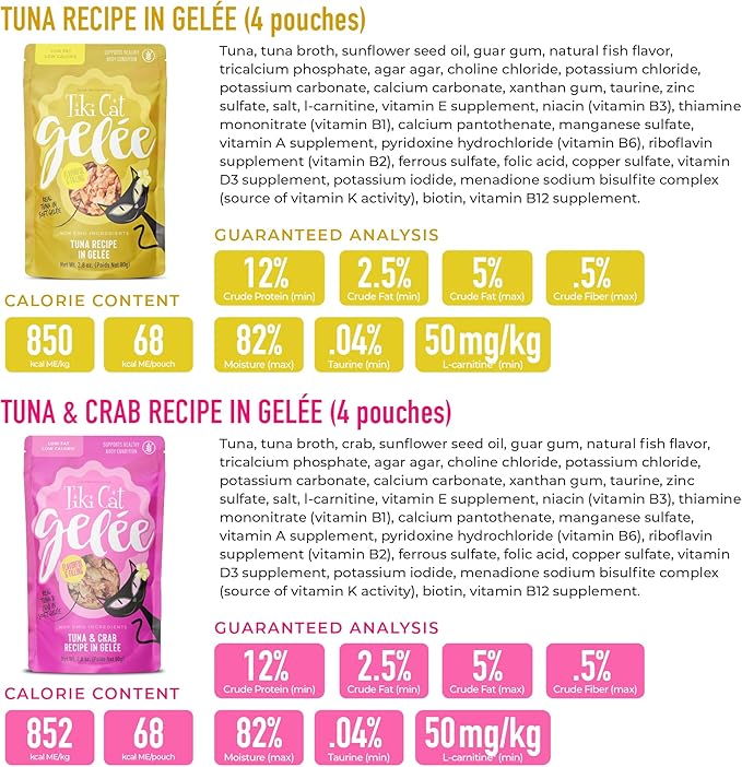 Tiki Cat Gelee Wet Cat Food, Tuna Variety Pack, 2.8 oz. Pouch (12 Count)