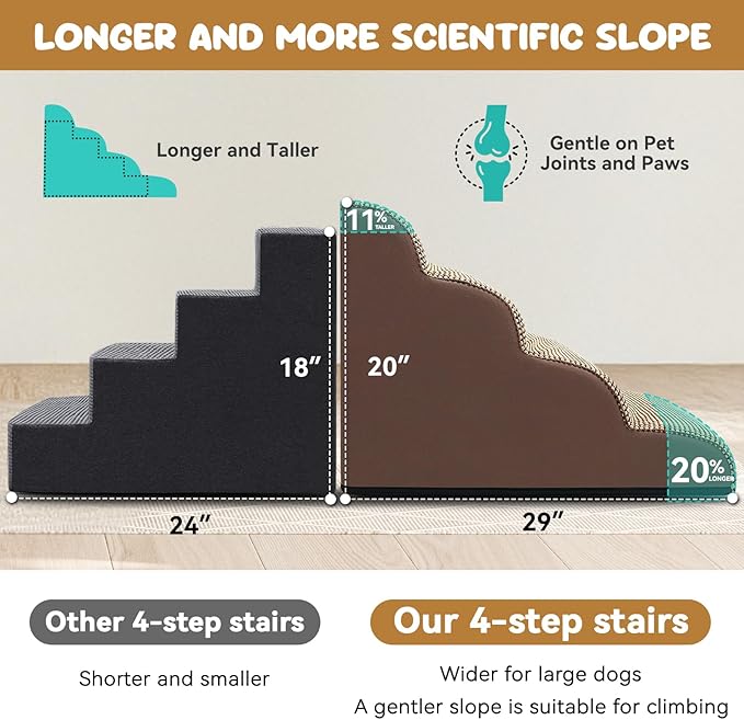 - Multi Sizes Fit Every Need: Zerbuger foam dog stair is not suitable for large dogs, please use it for pets under 50lbs! 3-steps are suitable for chairs and couches up to 20inch, 4-steps are suitable for high sofas, beds and window up to 25inch. Please confirm whether the size is suitable for your love pet first.