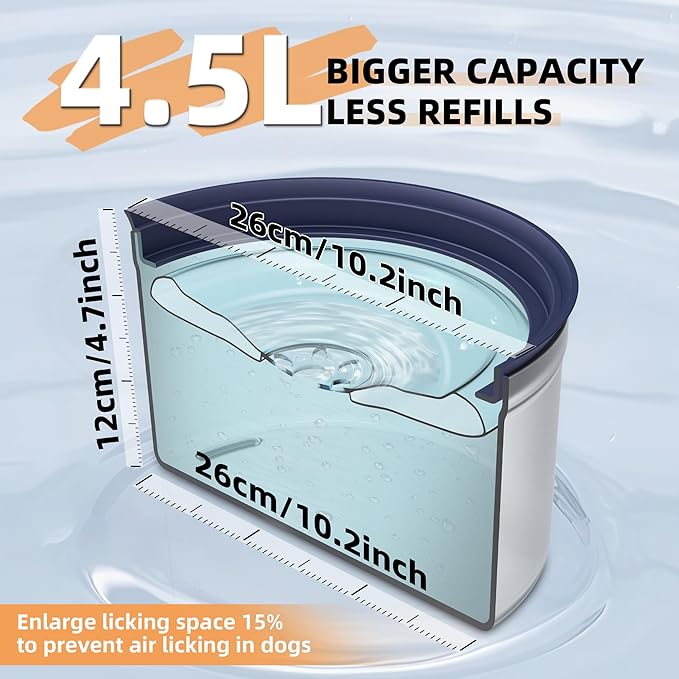 - 1.2 Gallon Large Capacity Water Bowl: The 1.2 Gallon large capacity design meets the all-day drinking needs of multi-pet families or large dogs without the need for frequent refills. Ideal for home, travel, or outdoor adventures, reduce refills and keep pets hydrated anywhere