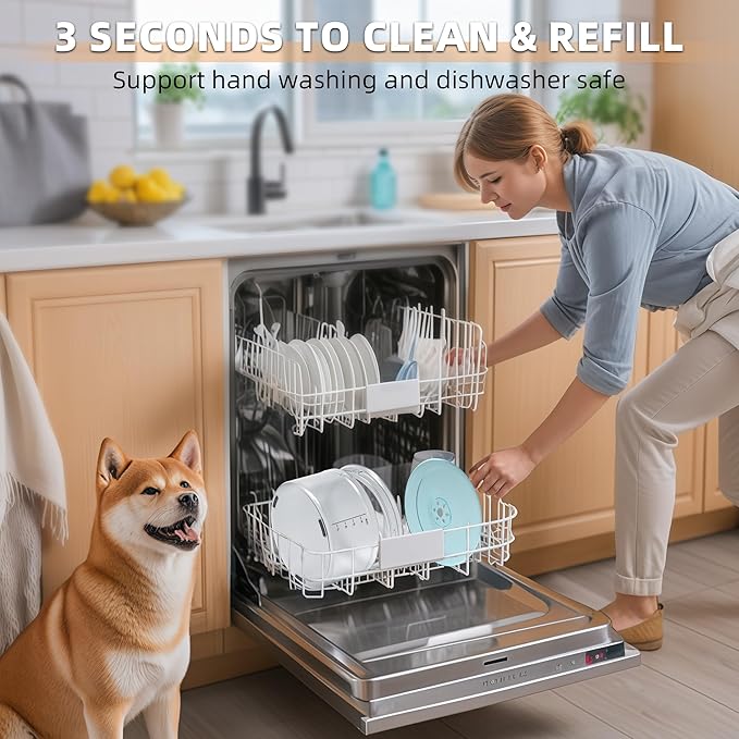 - Easy Clean & Dishwasher Safe: Without removing the floating disk, you can rinse directly with clean water or wipe with a soft cloth. The splash proof dog water bowl is fully dishwasher-safe for hassle-free maintenance. Say goodbye to hard to reach corners