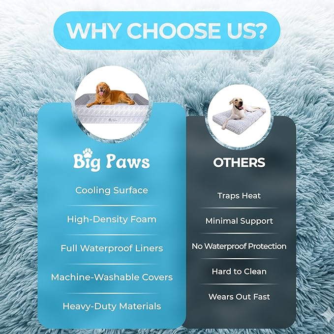 - Cooling Dog Bed for Large Dogs – Designed with an ice silk cooling surface to help regulate body temperature, this large dog bed keeps warm dogs cool. Ideal for summer, hot climates, and big dogs who overheat easily.
