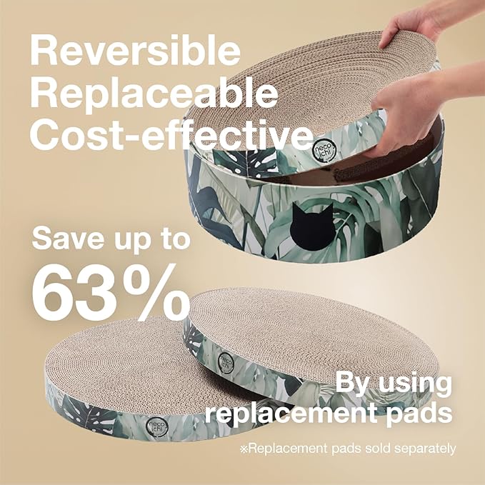 - Designed with a replaceable scratching pad that’s also reversible.