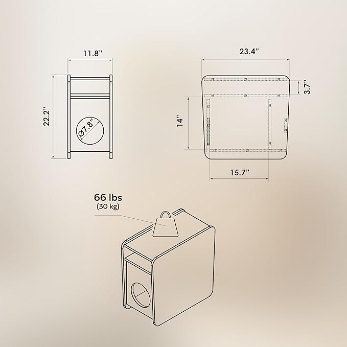 - GIVE YOUR CAT A COZY HIDEAWAY with this high-end wooden cat hideout that doubles as a stylish end table. Featuring a round entry opening (⌀ 7’’) and a spacious inner compartment (10.55" W x 14" H x 15.7" D), it provides a cat cave for your favourite one to rest and relax. Compact yet functional, this cat end table blends seamlessly into your living room, bedroom, or office. PILLOW NOT INCLUDED.