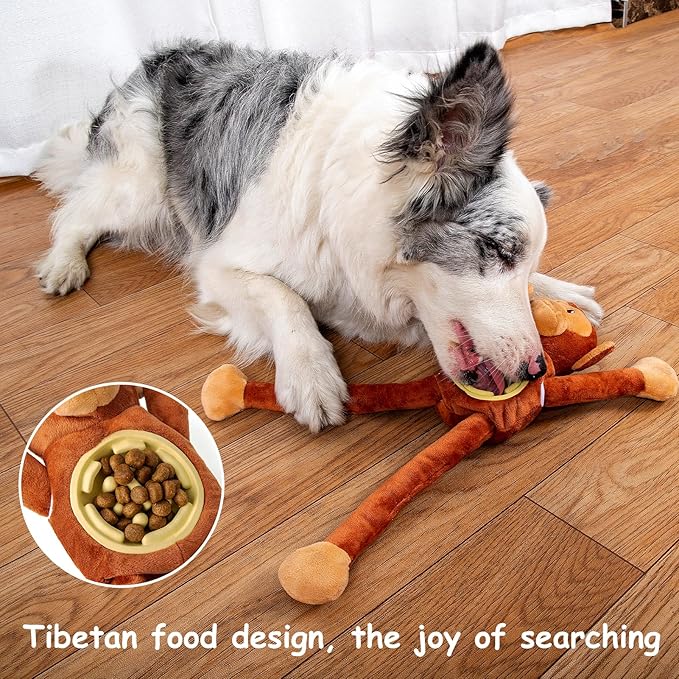 - Monkey Dog Plush Toy - This squeaky pet toy is a delightful creation in a cartoon monkey. It's made of soft short plush fabric. The natural rubber slow feeder bowl built-in abdomen is no harmful substance,ensures a worry-free playtime.