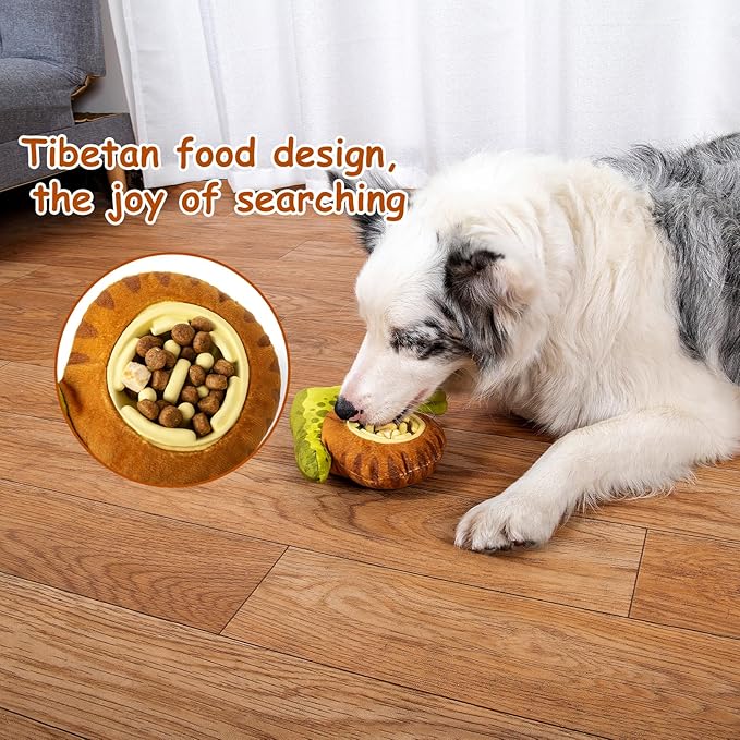 - Multifunctional Fun and Interaction - This stuffed dog toy with a squeaker will attract dog's interest, making them excited to play. The middle part design a slow-feeding bowl to encourages chewing, helps your dog release emotions, reduce anxiety. These interactive activities strengthen the bond between dogs and their owners while providing daily training and entertainment