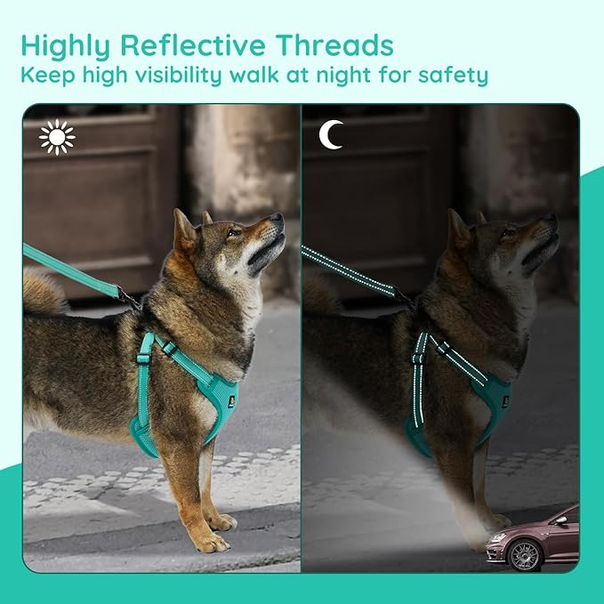 - 【REFLECTIVE HARNESS】With reflective strip design, the dog harness strip provides extra visibility and safety for day or night walking. The leash also has reflective strip, more safety.