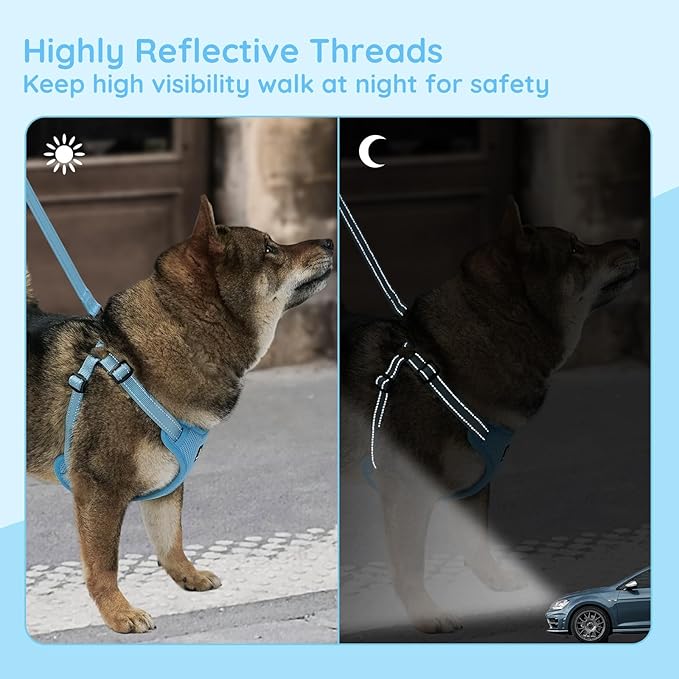 - 【REFLECTIVE HARNESS】With reflective strip design, the dog harness strip provides extra visibility and safety for day or night walking. The leash also has reflective strip, more safety.