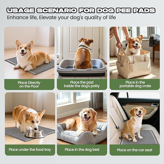 - 🦴【Standard Size & Multi Purpose】The size - 22"Wx22"L pee pads are ideal for puppies, kittens, cats, rabbits, ducks, squirrels, guinea pigs, birds, and other house - training pets, great for pet potty training, aging or sick pet assist, travel carrier, puppy tray, in the car, on carpet, on bed, and covering water and food bowl spillage as well