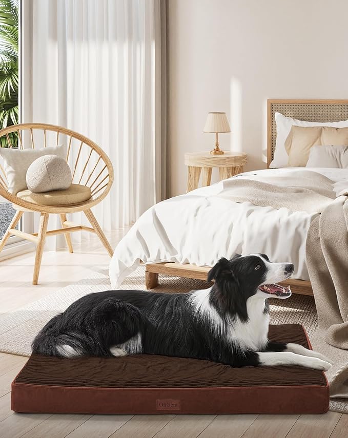 OhGeni Orthopedic Waterproof & Machine Washable Dog Bed for Medium Large Pets, Cat Mat with 25D Egg Crate Foam, Non-Slip Bottom & Removable Cover, 36 Inches(Brown)