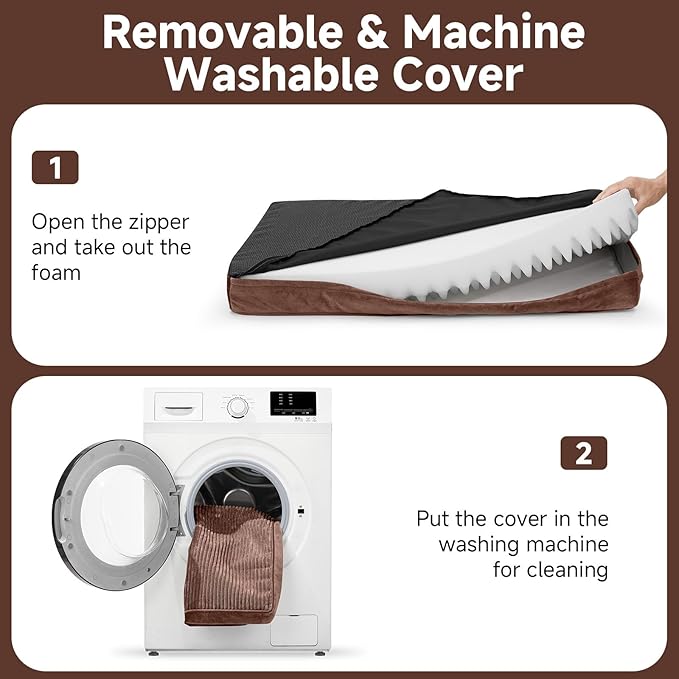 - 【Waterproof & Machine Washable】A premium waterproof inner liner acts as a strong barrier against moisture, preventing liquids from seeping into the core foam. The removable outer cover is completely machine washable and dryer-safe, making it effortless to clean away dirt, fur, or odors—so maintenance is quick and hassle-free.