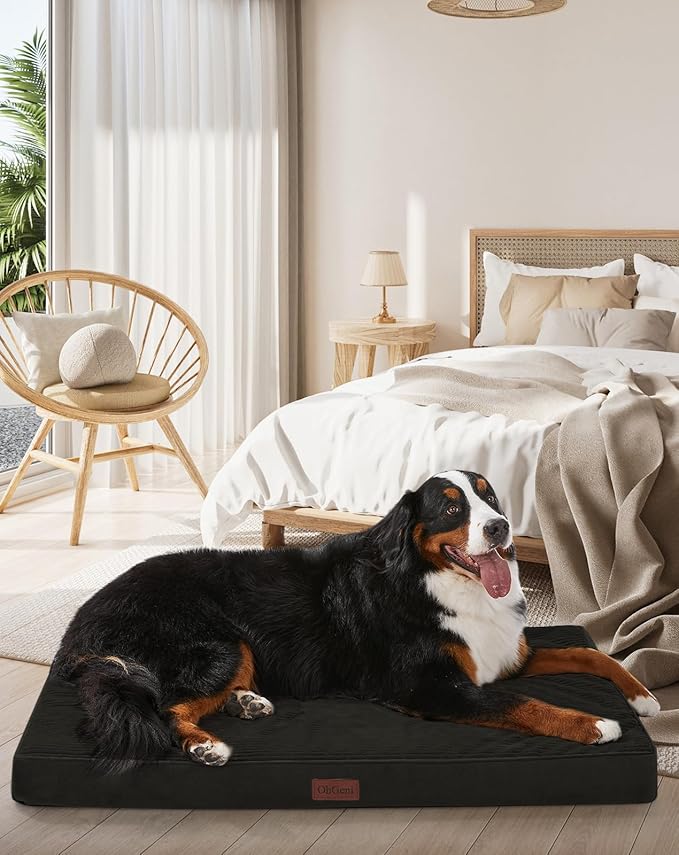 OhGeni Orthopedic Waterproof & Machine Washable Dog Bed for Extra Large Pets, Suitable for Crates, Cat Mat with 25D Egg Crate Foam, Non-Slip Bottom & Removable Cover, 47 Inches(Black)