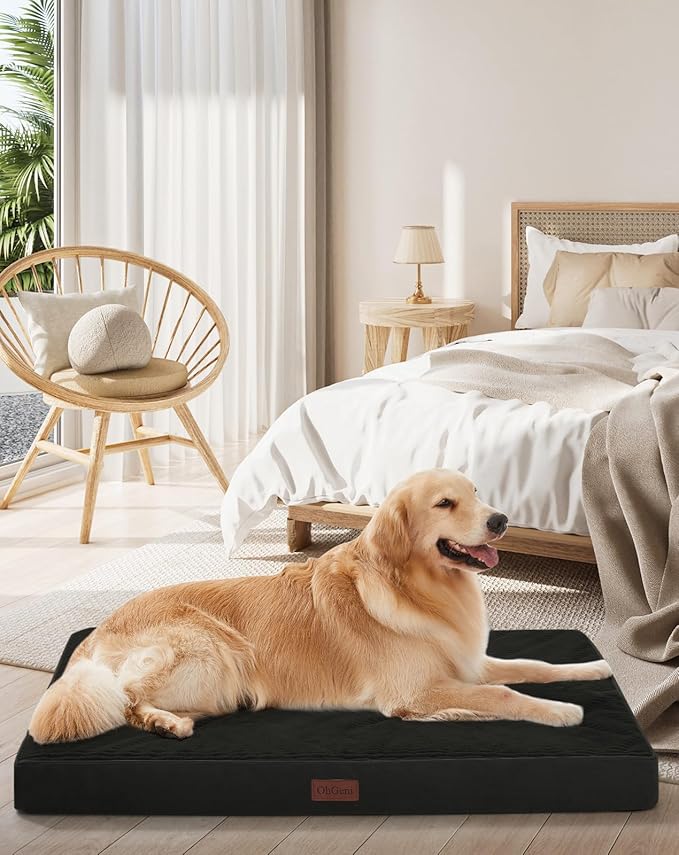 OhGeni Orthopedic Waterproof & Machine Washable Dog Bed for Medium Large Pets, Cat Mat with 25D Egg Crate Foam, Non-Slip Bottom & Removable Cover, 44 Inches(Black)