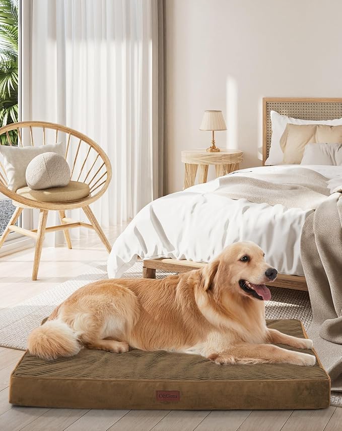 OhGeni Orthopedic Waterproof & Machine Washable Dog Bed for Large Pets, Suitable for Crates, Cat Mat with 25D Egg Crate Foam, Non-Slip Bottom & Removable Cover, 41 Inches(Coffee)