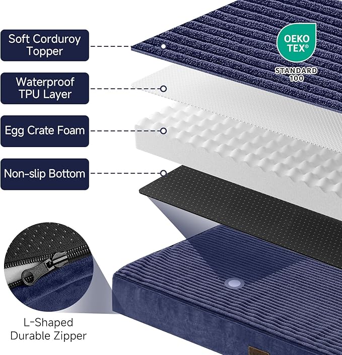 - 【Waterproof & Machine Washable】A premium waterproof inner liner acts as a strong barrier against moisture, preventing liquids from seeping into the core foam. The removable outer cover is completely machine washable and dryer-safe, making it effortless to clean away dirt, fur, or odors—so maintenance is quick and hassle-free.