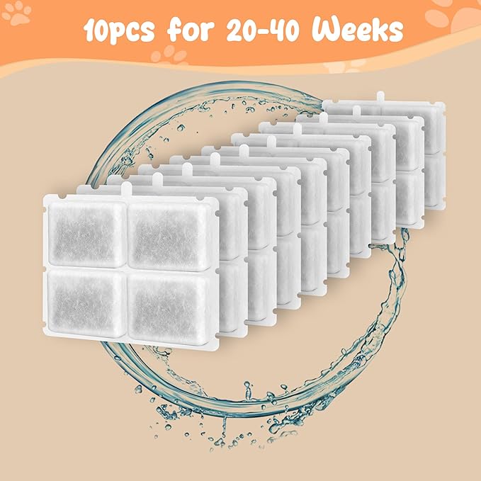 - Freshness in Every Sip: Dog water fountain delivers a free-falling stream to picky cats/ dogs are into, ensuring they’re always hydrated while also preventing kidney disease. Every drop of water is filtered through vertical filtration system to remove all impurities and provide oxygen-enriched and better-tasting water. We paired it with five filters for a long time use